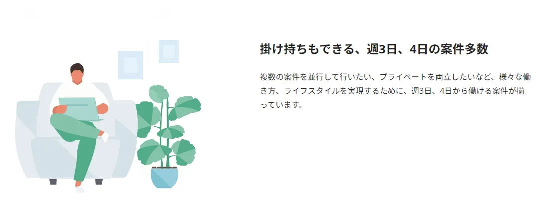 また、高額な案件報酬を設定している企業もあるため、案件によっては週3、週4でも満足した生活を送れますよ。