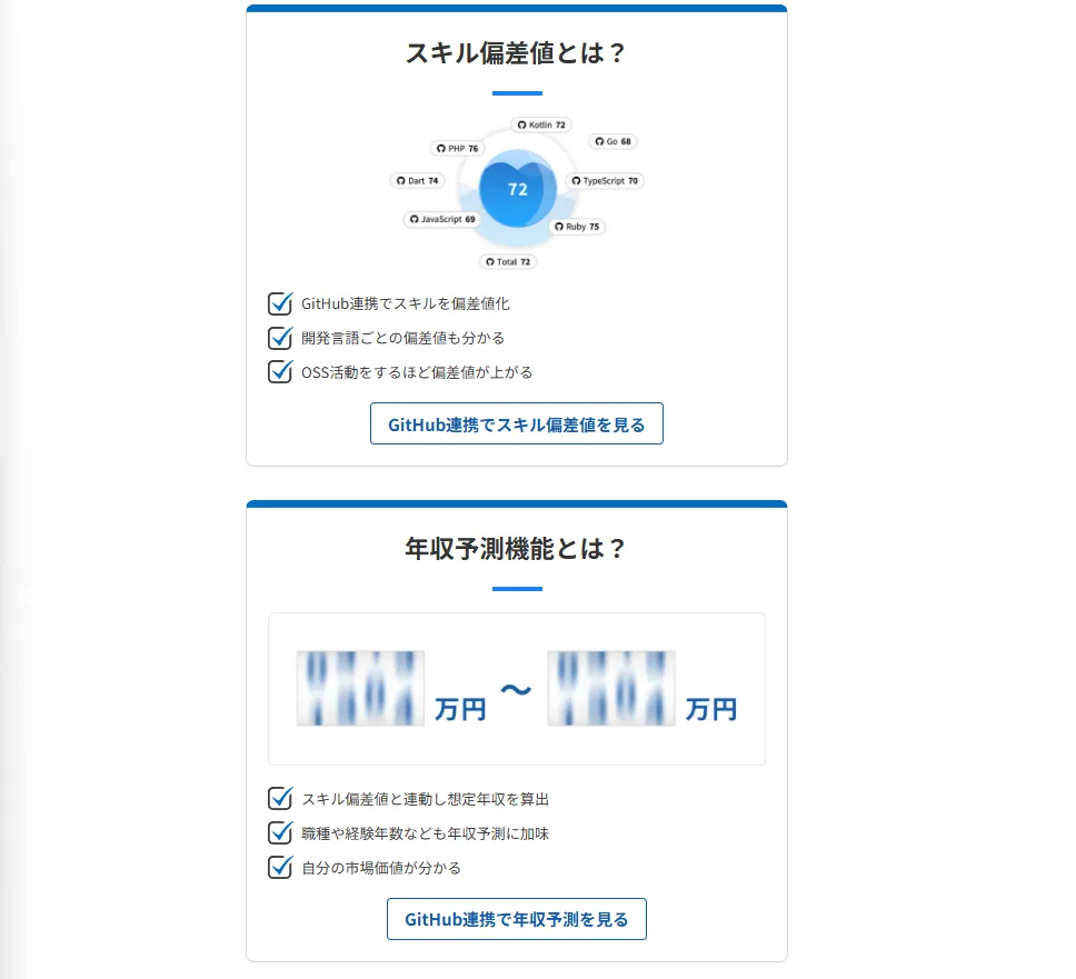 FindyはGitHubを連携して利用する転職サービスであり、開発言語ごとの偏差値を自動で導き出してくれます。