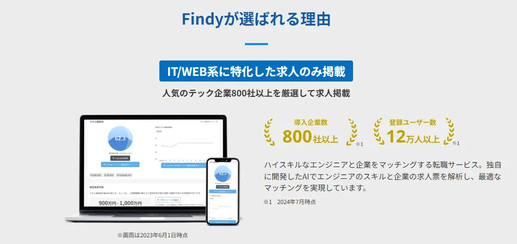 そのため、これまでITエンジニアとして活躍してきた人は、Findyを利用することで、自分のスキルレベルに見合った企業へ転職できますよ。