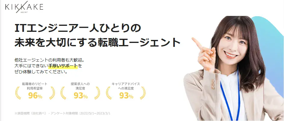 というのも、キッカケエージェントはITエンジニアに特化した転職サービスであり、多くの利用者から「再度リピートしたい」という声が挙がっているからです。