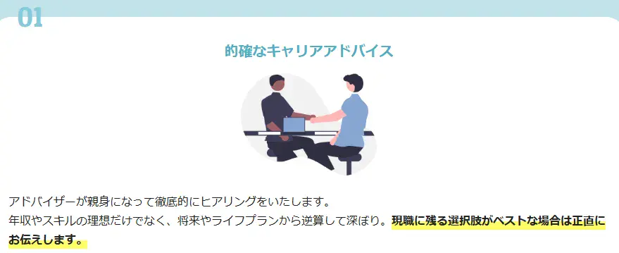 求人紹介、年収・入社日程交渉、面接対策、職務経歴書作成サポートなど