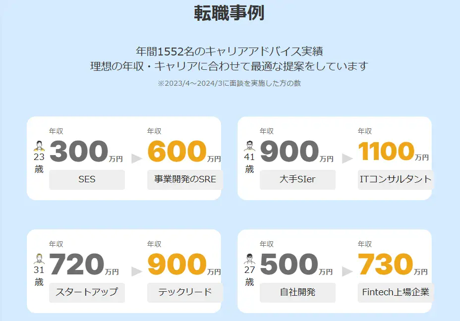 このことから、年収アップ転職を目指している方や、充実した転職サポートを受けたい方にもおすすめできますよ。