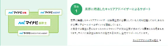 例えば、マイナビ税理士では税理士業界に精通したアドバイザーが在籍しており、マイナビ会計士では会計士業界に精通したアドバイザーが在籍しています。