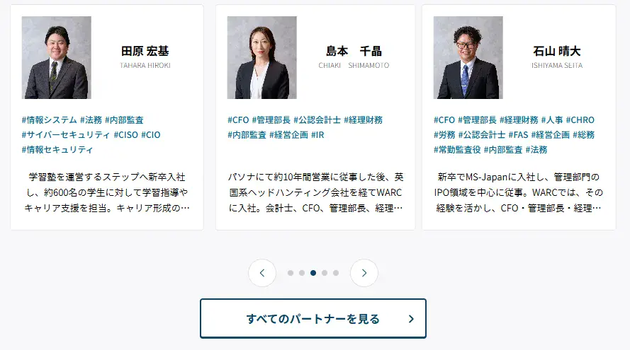 WARC AGENTには、公認会計士を中心とした管理部門出身者が多数在籍。企業理解を踏まえた支援が可能です。